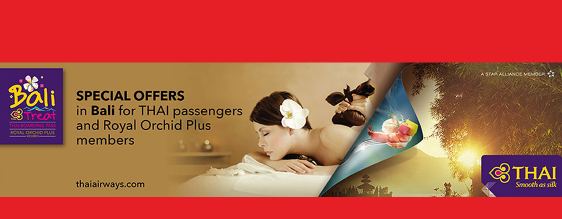 All you have to do is save your Thai Airways boarding pass, make an appointment for two people at either Jari Menari Seminyak, present your boarding pass and enjoy two massages for the price of one.